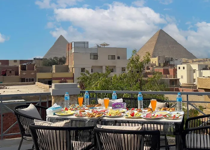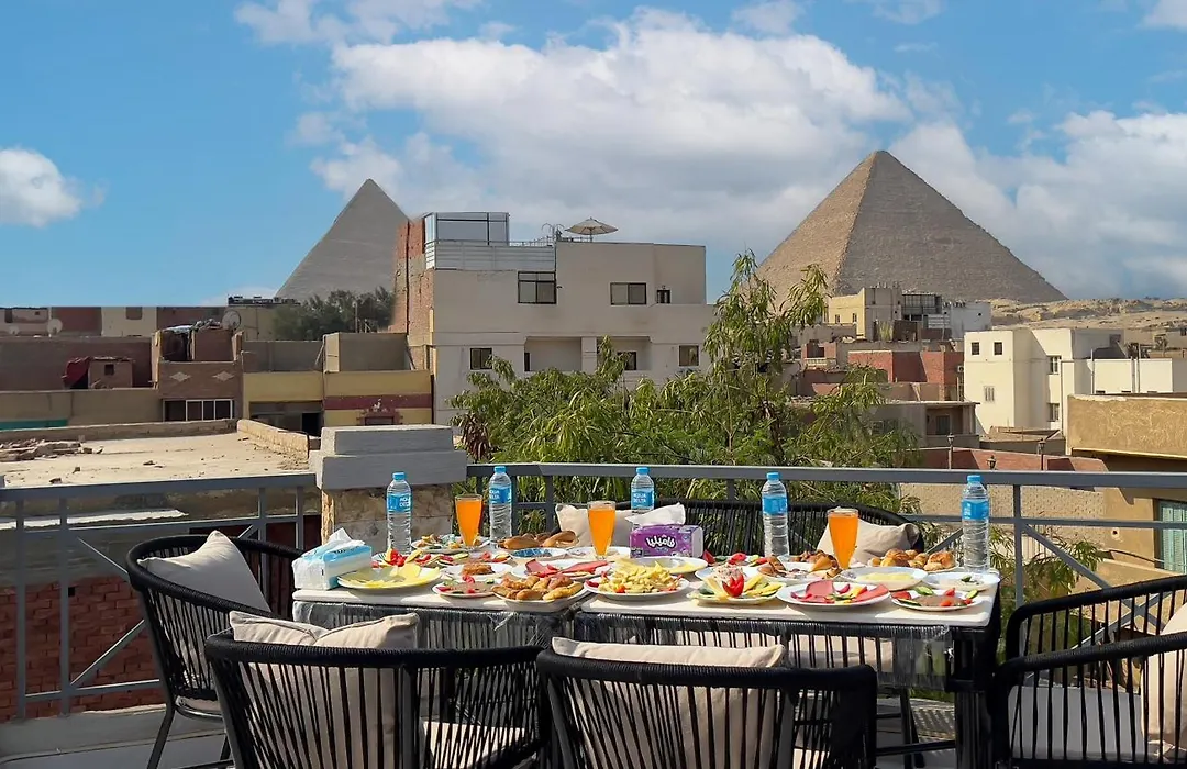 A vegetarian breakfast can be enjoyed at the Pyramids Sunlight. You may walk 5 minutes to Elhadaba or eat by Abu Shakra, located approximately a 5-minute stroll away.